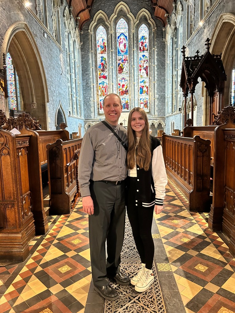 In March Alyssa had an opportunity to travel to Ireland with the Bay Port High School Band. The trip included some music education opportunities, plenty of sightseeing, and the group performed a concert at St Canice’s Cathedral in Kilkenny. I was able to join the trip as a chaperone, and they let me play along with the band on the St Canice organ for one of the pieces. Here are some pictures from that trip…