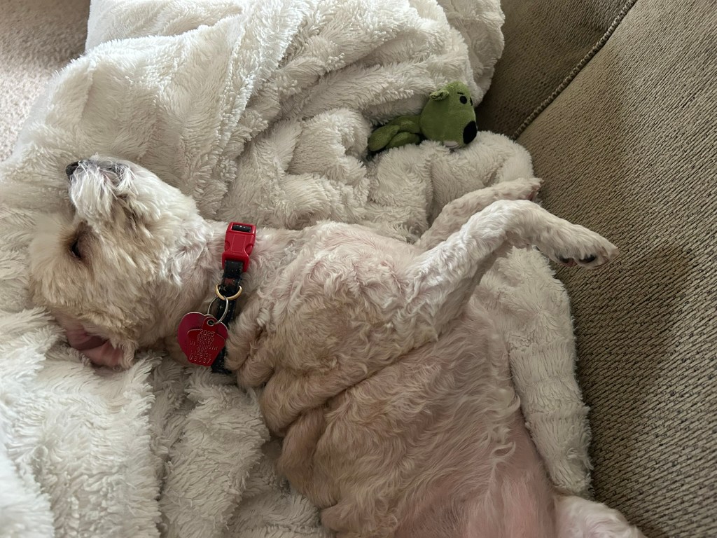 Trixie is now eight years old and spoiled as ever. How can she sleep like this?